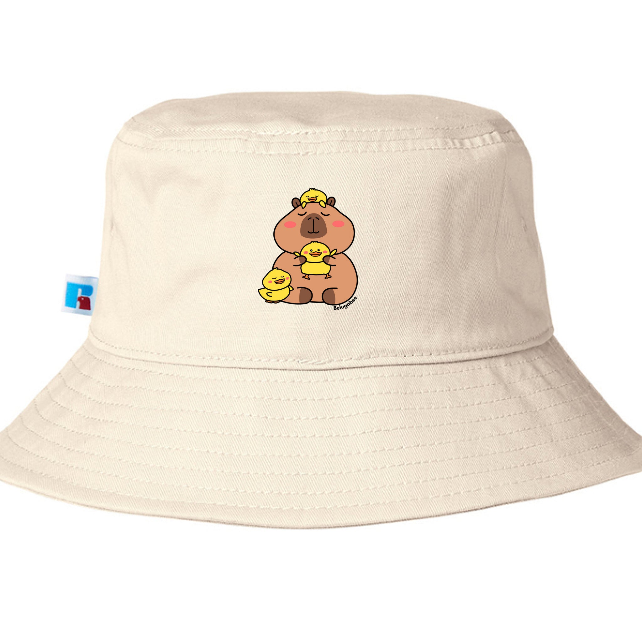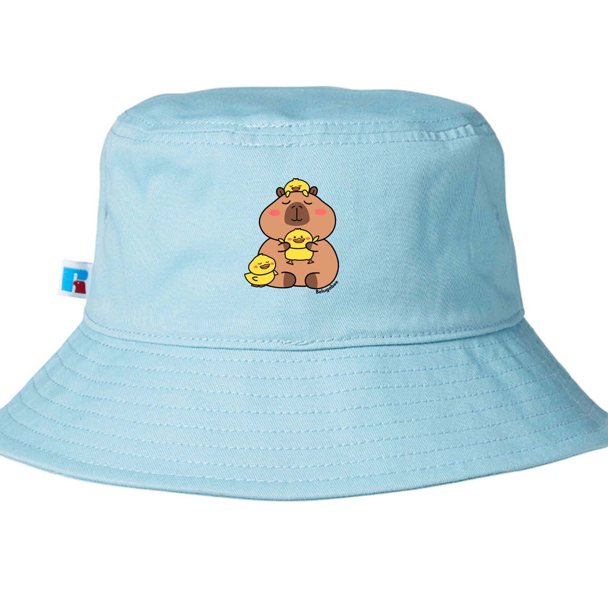 This sky-blue bucket hat features the sweetest little capybara hanging out with three happy ducklings, and honestly… it just makes you smile. 🥹
